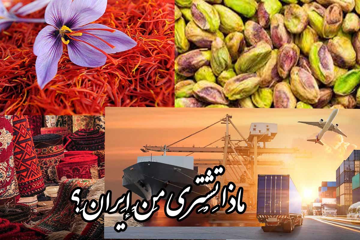 تمتلك إيران، بمواردها الغنية، تنوعها المناخي وبنيتها الإنتاجية، سلة واسعة من السلع التصديرية للأسواق العالمية. من المنتجات الزراعية مثل الفستق، الزعفران، التمر والحمضيات إلى المعادن مثل الأحجار، النحاس والفولاذ، ومن البتروكيماويات مثل الميثانول، اليوريا والأحماض والبوليمرات إلى المنتجات الصناعية والاستهلاكية كالسجاد، الصناعات اليدوية، الأحذية، الألبسة والأدوية—all هذه تدخل ضمن قائمة السلع المطلوبة من قبل المشترين الأجانب.